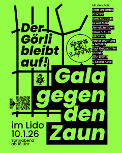 Wir Anwohner*innen können gegen die nächtliche Schliessung des Görlis klagen – also machen wir das auch! Für die Klage brauchen wir Geld – also machen wir am 10. Januar gemeinsam mit dem Bündnis „Görli zaunfrei“ eine Spendengala im Lido.